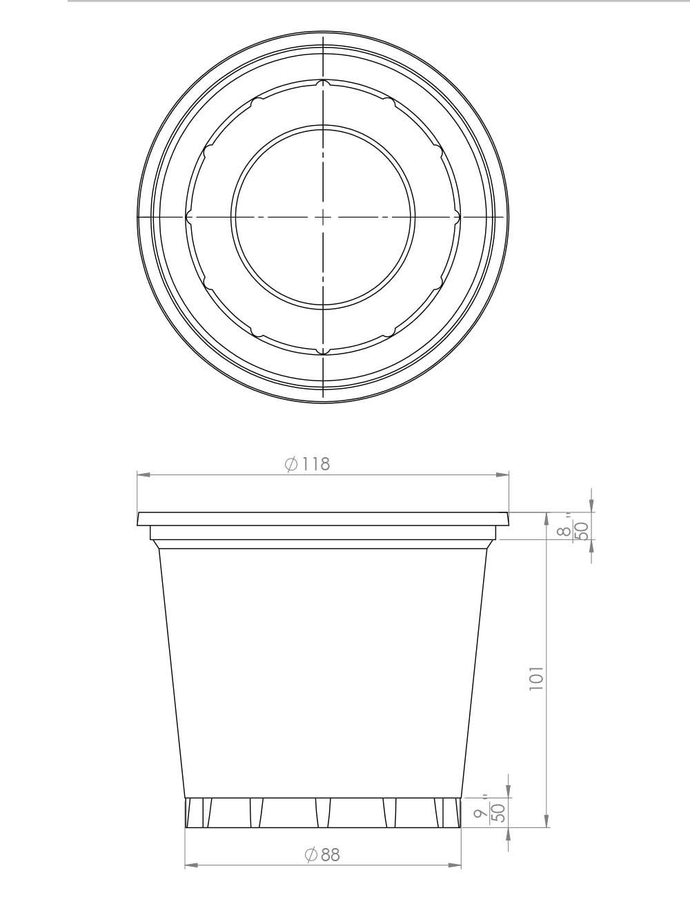 قطر دهانه بالا: 120 میلیمتر (خارجی) / 95 میی متر (داخلی)